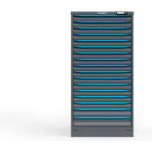 Strong Hold Modular Drawer Cabinet, 17 Drawers, 45 Comp., 30"W x 29"D x 60"H, Blue /Gray, Elec. Lock
