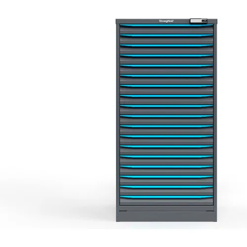 Strong Hold Modular Drawer Cabinet, 18 Drawers, 30"W x 29"D x 60"H, Blue /Gray, Electronic Lock