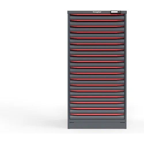Strong Hold Modular Drawer Cabinet, 18 Drawers, 30"W x 29"D x 60"H, Red /Gray, Electronic Lock