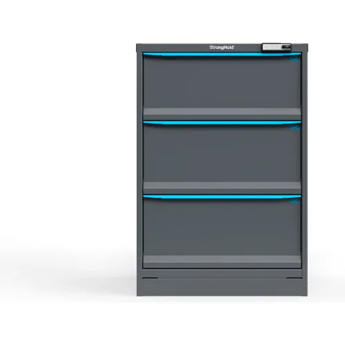 Strong Hold Modular Drawer Cabinet, 3 Drawers, 30"W x 29"D x 44"H, Blue /Gray, Electronic Lock