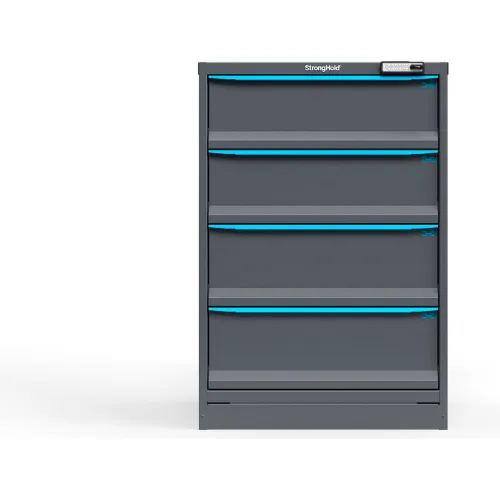 Strong Hold Modular Drawer Cabinet, 4 Drawers, 20 Comp., 30"W x 29"D x 44"H, Blue /Gray, Elec. Lock