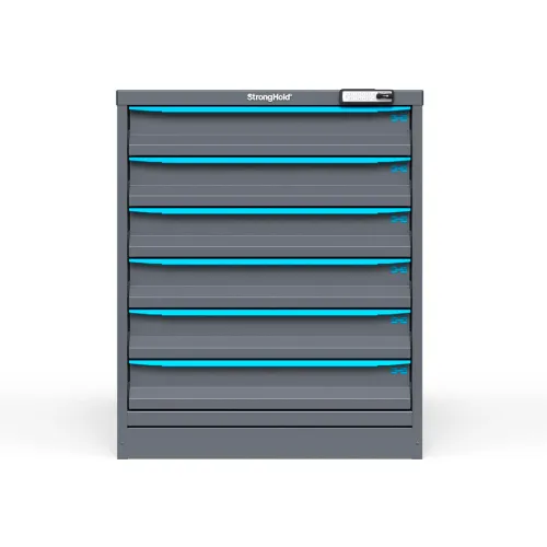 Strong Hold Modular Drawer Cabinet, 6 Drawers, 120 Comp., 30"W x 29"D x 36"H, Blue /Gray, Elec. Lock