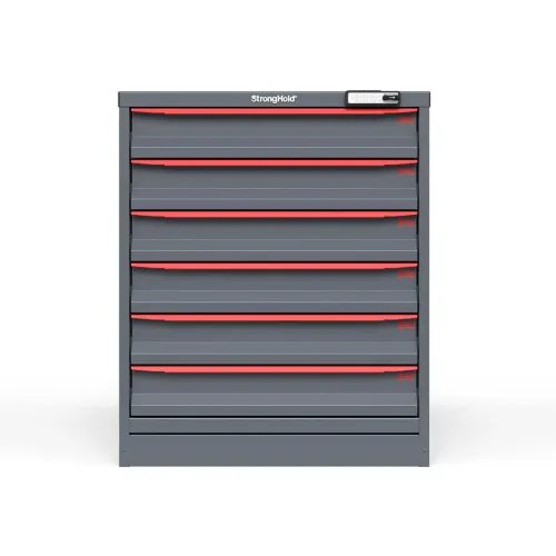 Strong Hold Modular Drawer Cabinet, 6 Drawers, 120 Comp., 30"W x 29"D x 36"H, Red /Gray, Elec. Lock