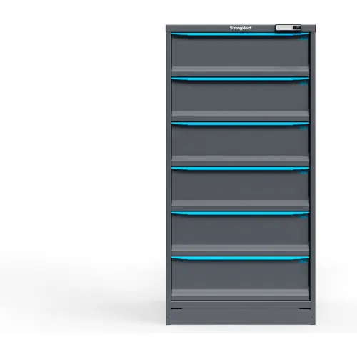 Strong Hold Modular Drawer Cabinet, 6 Drawers, 36 Comp., 30"W x 29"D x 60"H, Blue /Gray, Elec. Lock
