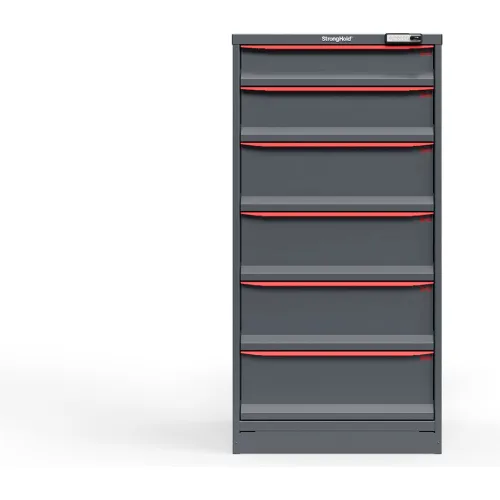 Strong Hold Modular Drawer Cabinet, 6 Drawers, 41 Comp., 30"W x 29"D x 60"H, Red /Gray, Elec. Lock