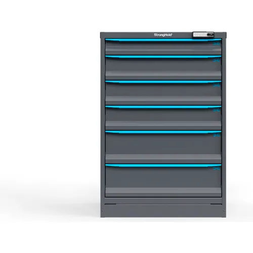 Strong Hold Modular Drawer Cabinet, 6 Drawers, 91 Comp., 30"W x 29"D x 44"H, Blue /Gray, Elec. Lock