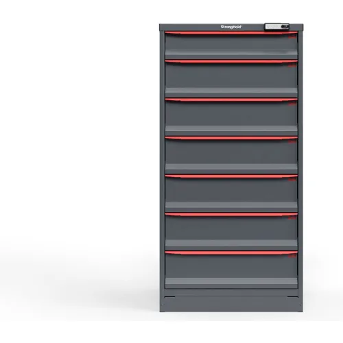 Strong Hold Modular Drawer Cabinet, 7 Drawers, 70 Comp., 30"W x 29"D x 60"H, Red /Gray, Elec. Lock