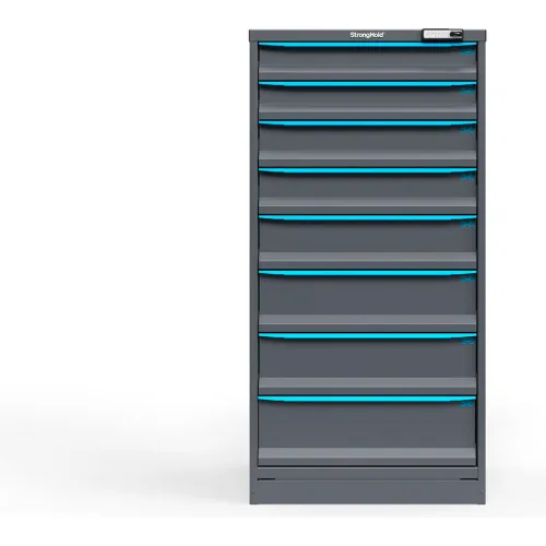 Strong Hold Modular Drawer Cabinet, 8 Drawers, 108 Comp., 30"W x 29"D x 60"H, Blue /Gray, Elec. Lock