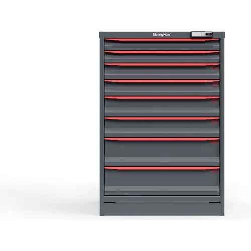 Strong Hold Modular Drawer Cabinet, 8 Drawers (4 Sz.), 114 Comp., 30"Wx29"Dx44"H, Red , Elec. Lock