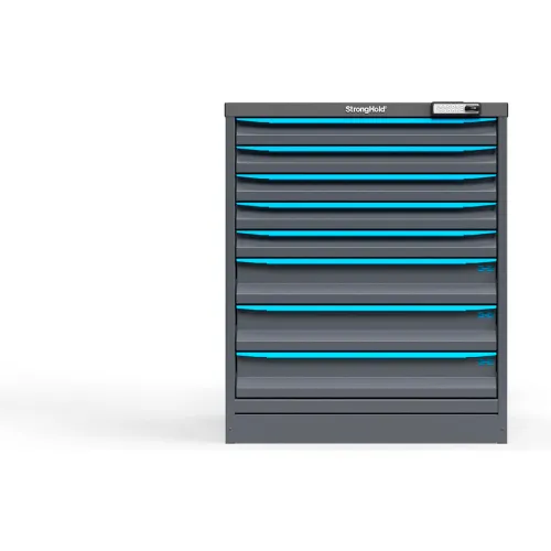 Strong Hold Modular Drawer Cabinet, 8 Drawers, 60 Comp., 30"W x 29"D x 36"H, Blue /Gray, Elec. Lock