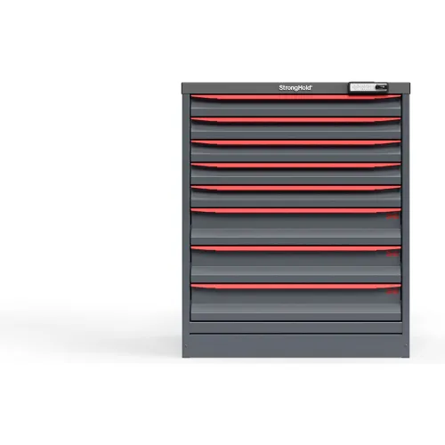 Strong Hold Modular Drawer Cabinet, 8 Drawers, 60 Comp., 30"W x 29"D x 36"H, Red /Gray, Elec. Lock