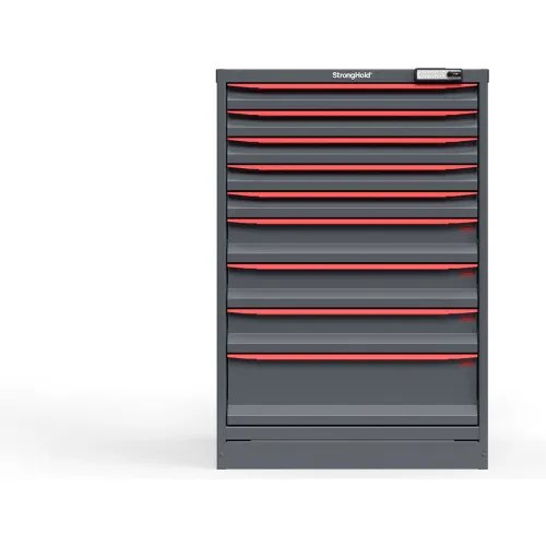 Strong Hold Modular Drawer Cabinet, 9 Drawers, 69 Comp., 30"W x 29"D x 44"H, Red /Gray, Elec. Lock