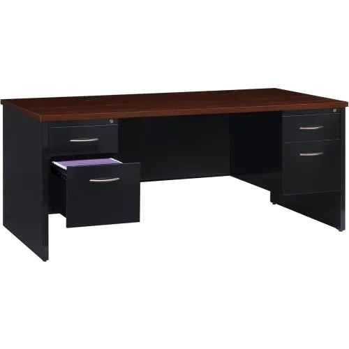 Hirsh Industries® Modular Steel Desk - Double Pedestal - 72 x 36 - Black/Walnut