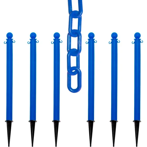 Mr. Chain® 2-1/2" Ground Pole Kit with 2" x 50'L Chain, Blue, Pack of 6