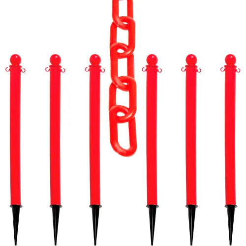 Mr. Chain® 2-1/2" Ground Pole Kit with 2" x 50'L Chain, Red, Pack of 6