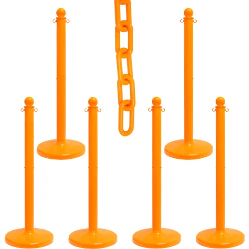 Mr. Chain® 2-1/2" Medium Duty Stowable Stanchion Kit w/ 2" x 50'L Chain, Safety Orange, Pk of 6