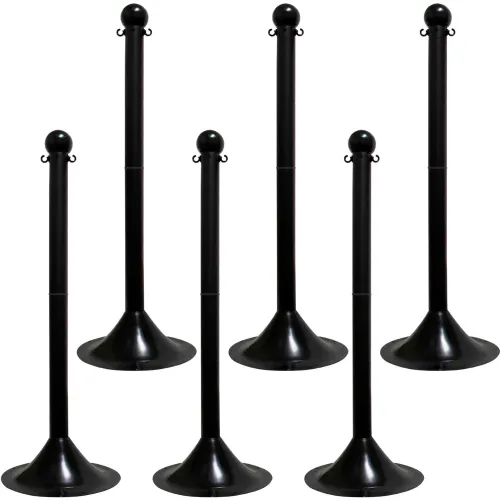 Mr. Chain® 2" Light Duty Stowable Stanchion, 41"H, Black, Pack of 6