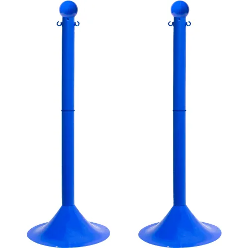 Mr. Chain® 2" Light Duty Stowable Stanchion, 41"H, Blue, Pack of 2