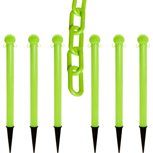 Mr. Chain® 3" Heavy Duty Ground Pole Kit with 2" x 50'L Chain, Safety Green, Pack of 6