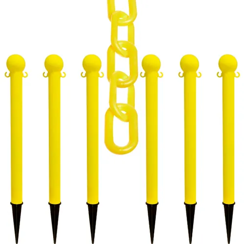 Mr. Chain® 3" Heavy Duty Ground Pole Kit with 2" x 50'L Chain, Yellow, Pack of 6