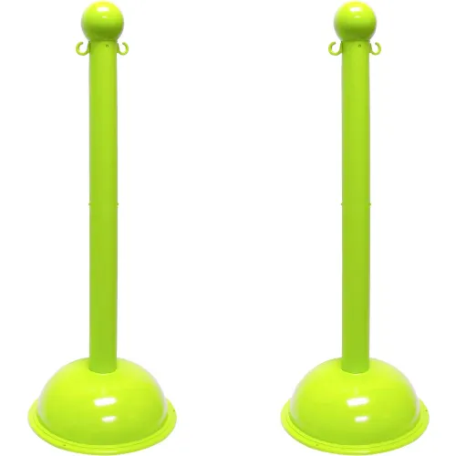 Mr. Chain® 3" Heavy Duty Stowable Stanchion, 41"H, Safety Green, Pack of 2