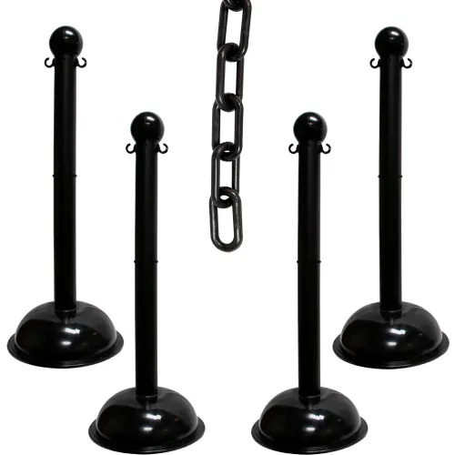 Mr. Chain® 3" Heavy Duty Stowable Stanchion Kit with 2" x 30'L Chain, Black, Pack of 4