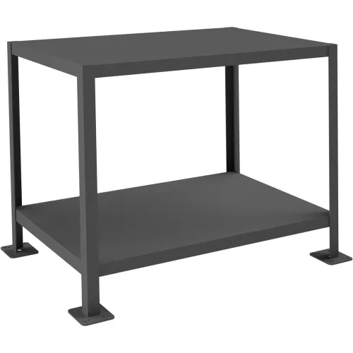 Durham Mfg. Stationary Machine Table W/ 2 Shelves, Steel Square Edge, 36"W x 24"D, Gray