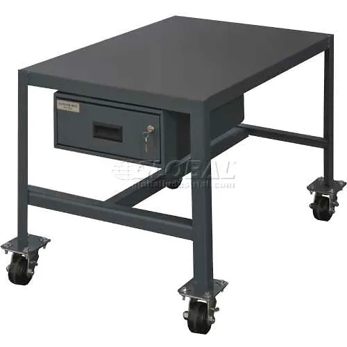 Durham Mfg. Mobile Machine Table W/ Drawer, Steel Square Edge, 36"W x 24"D x 18"H, Gray