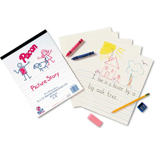 Pacon® Multi-Program Picture Story Paper, 5/8" Long Rule, 12 x 9, White, 500 Sheets/Pk