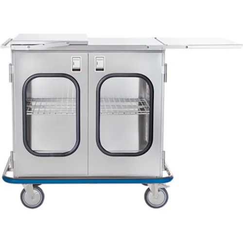 Blickman Multi Purpose Case Cart, 42"Wx40 1/2"Hx29"D, 2 Ext Shelves, 1 SS Wire Shelf, 2 Glass Doors