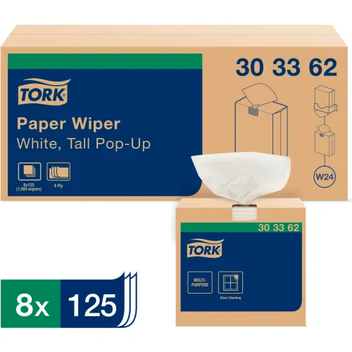 Tork® Multipurpose Paper Wiper, 9-3/4 x 16-3/4, White, 125/Box, 8 Boxes/Carton - 303362