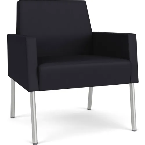 Lesro Mystic Lounge Guest Chair, Silver Frame, Patriot Plus Black Vinyl