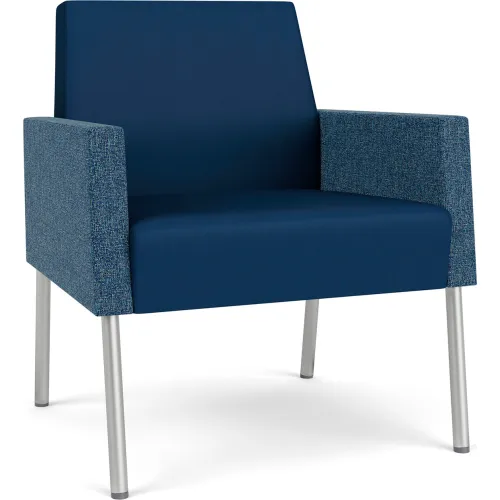 Lesro Mystic Lounge Guest Chair, Silver Frame, Patriot Plus Imperial Blue Vinyl Back & Seat