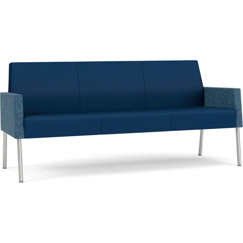 Lesro Mystic Lounge Reception Sofa, Silver Frame, Patriot Plus Imperial Blue Vinyl Back & Seat