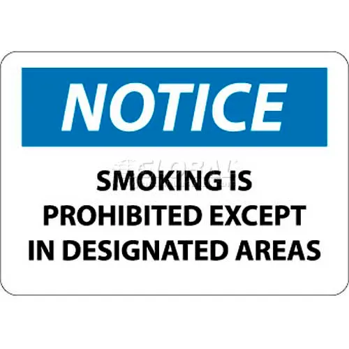 NMC N155RB OSHA Sign, Notice Smoking Is Prohibited Except In Designated Areas, 10" X 14", Wh/Bl/Bk