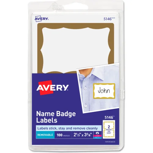 Avery® Name Badge Labels With Gold Border, 2-11/32" x 3-3/8"