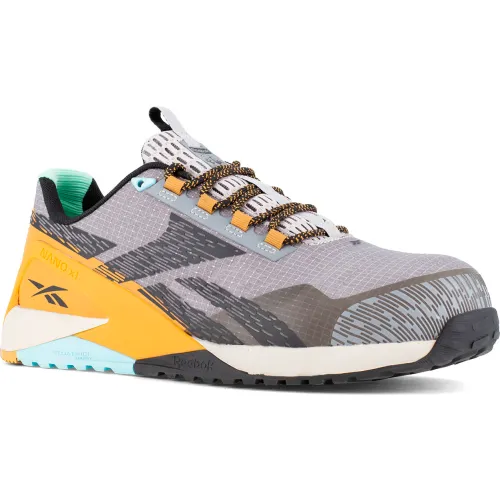 Reebok Nano X1 Adventure Athletic Work Shoes, Composite Toe, Size 10.5M, Silver/Gray/Clay/Black
