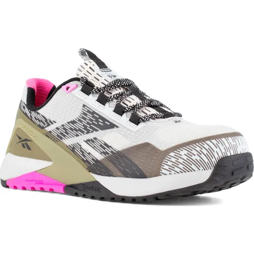 Reebok Nano X1 Adventure Athletic Work Shoes, Composite Toe, Size 5.5M, Silver/Army Green/Pink