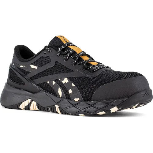 Reebok Nanoflex TR Athletic Work Shoes, Composite Toe, Size 9.5W, Black/Camo/Brown