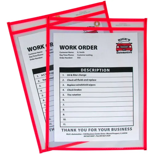 C-Line Products Neon Shop Ticket Holder, Red, Stitched, Both Sides Clear, 9 x 12, 15EA/BX