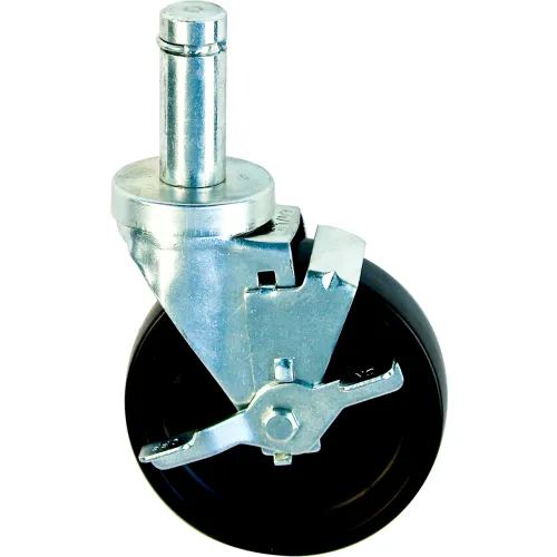 New Age Stem Type Swivel Caster with Brake, Polyolefin, 5" Dia., 1200 lb. Capacity, Pack of 4