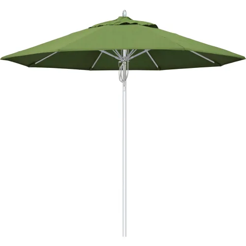 California Umbrella 9' Patio Umbrella, Newport Series, Silver Pole, Sunbrella 1A, Spectrum Cilantro