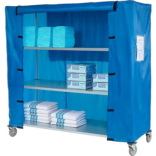 Nexel® Galvanized Steel Linen Cart with Nylon Cover, 4 Shelves, 60"L x 18"W x 69"H
