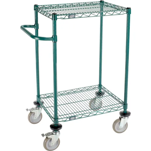 Nexel®, 2 Shelf, Push Cart, Poly-Green,24"W x 18"D x 40"H, Poly Casters,4 Swivel, 2 Brake