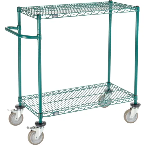 Nexel®, 2 Shelf, Push Cart, Poly-Green,36"W x 18"D x 40"H, Poly Casters,4 Swivel, 2 Brake