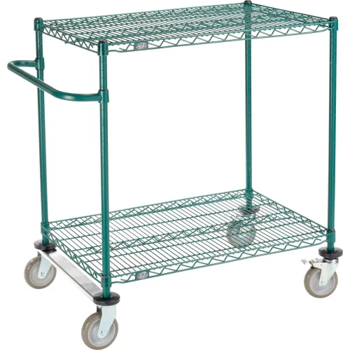 Nexel®, 2 Shelf, Push Cart, Poly-Green,36"W x 24"D x 40"H, Poly Casters,2 Rigid, 2 Brake