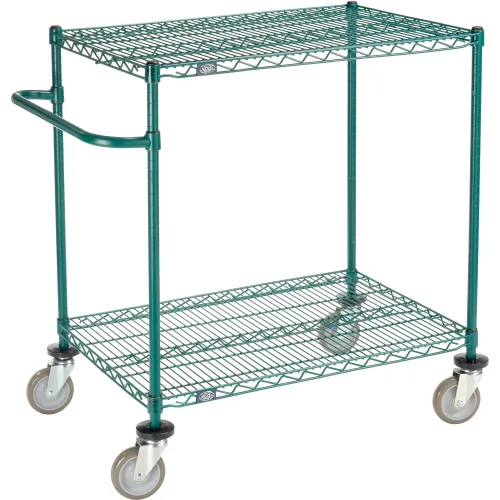 Nexel®, 2 Shelf, Push Cart, Poly-Green,36"W x 24"D x 40"H, Poly Casters,4 Swivel