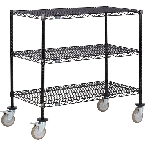 Nexel®, 3 Shelf, Shelf Cart, Black Epoxy, 42"W x 21"D x 40"H, Poly Casters,4 Swivel, 2 Brake