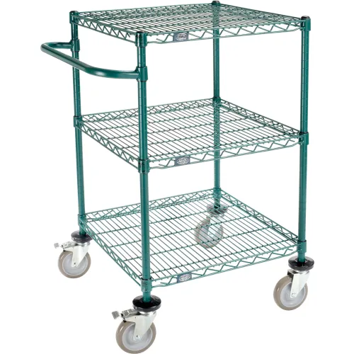 Nexel®, 3 Shelf, Push Cart, Poly-Green,24"W x 24"D x 40"H, Poly Casters,4 Swivel, 2 Brake