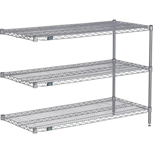 Nexel® 3 Shelf, Nexelate® Silver Epoxy Wire Shelving Unit, Add On, 48"W x 14"D x 34"H